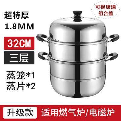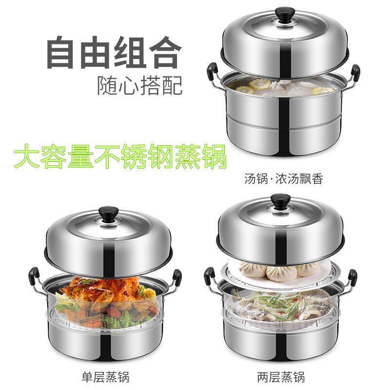 Thickened Double-Layer Extra Large Household Steamer Stainless Steel Three-Layer Steamed Bun Steamer 34 36 40cm Commercial Soup Pot