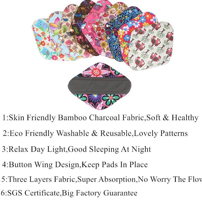 [simfamily] 10Pc Panty Liner Waterproof Bamboo Charcoal Material Menstrual Cloth Sanitary Pads Reusable Healthy physiological