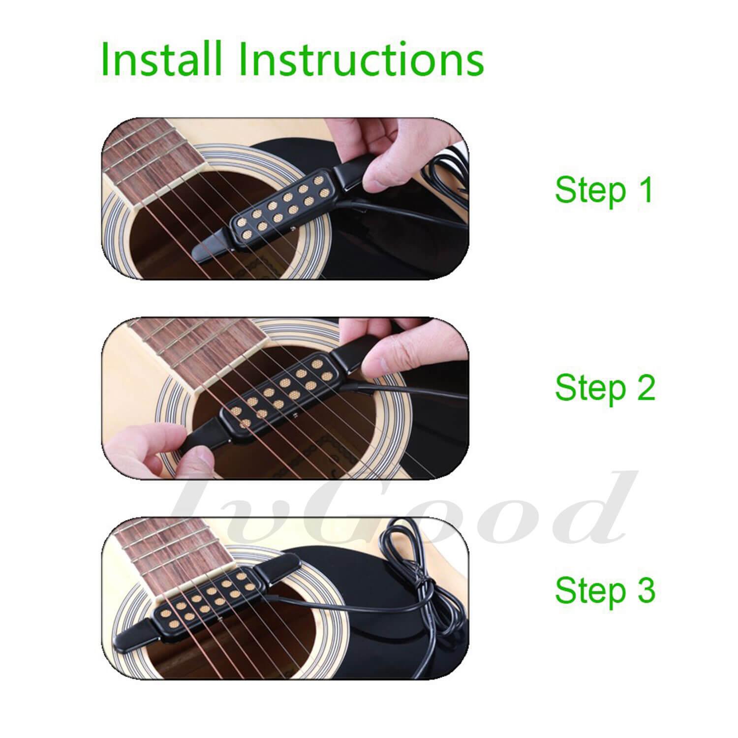 JvGood 12-hole Acoustic Guitar Sound Hole Pickup Magnetic Transducer with Tone Volume Controller Audio Cable
