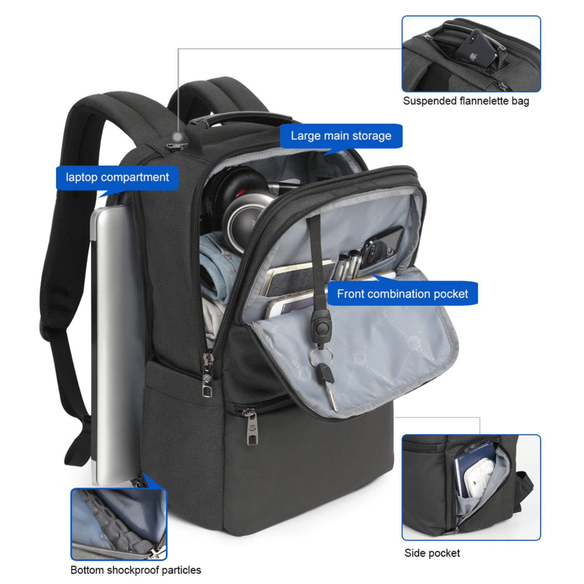 【Free shipping】Tigernu 15.6 RFID Anti theft Water resistant With USB Charging Port Laptop bag travel backpack for men