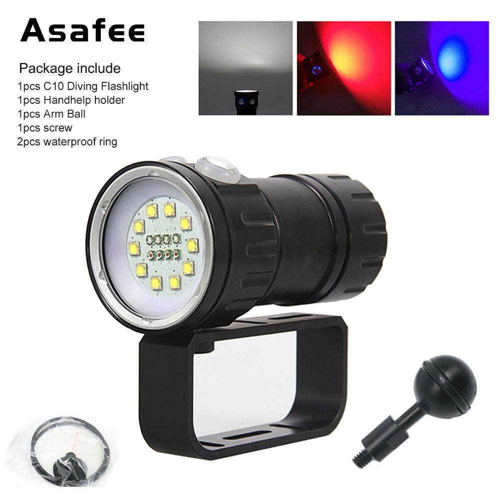 Asafee 20000LM XM-L2 LED Diving Flashlight XHP90 LED Photography Video light underwater 100m waterproof Tactical torch Lamp white red purple light
