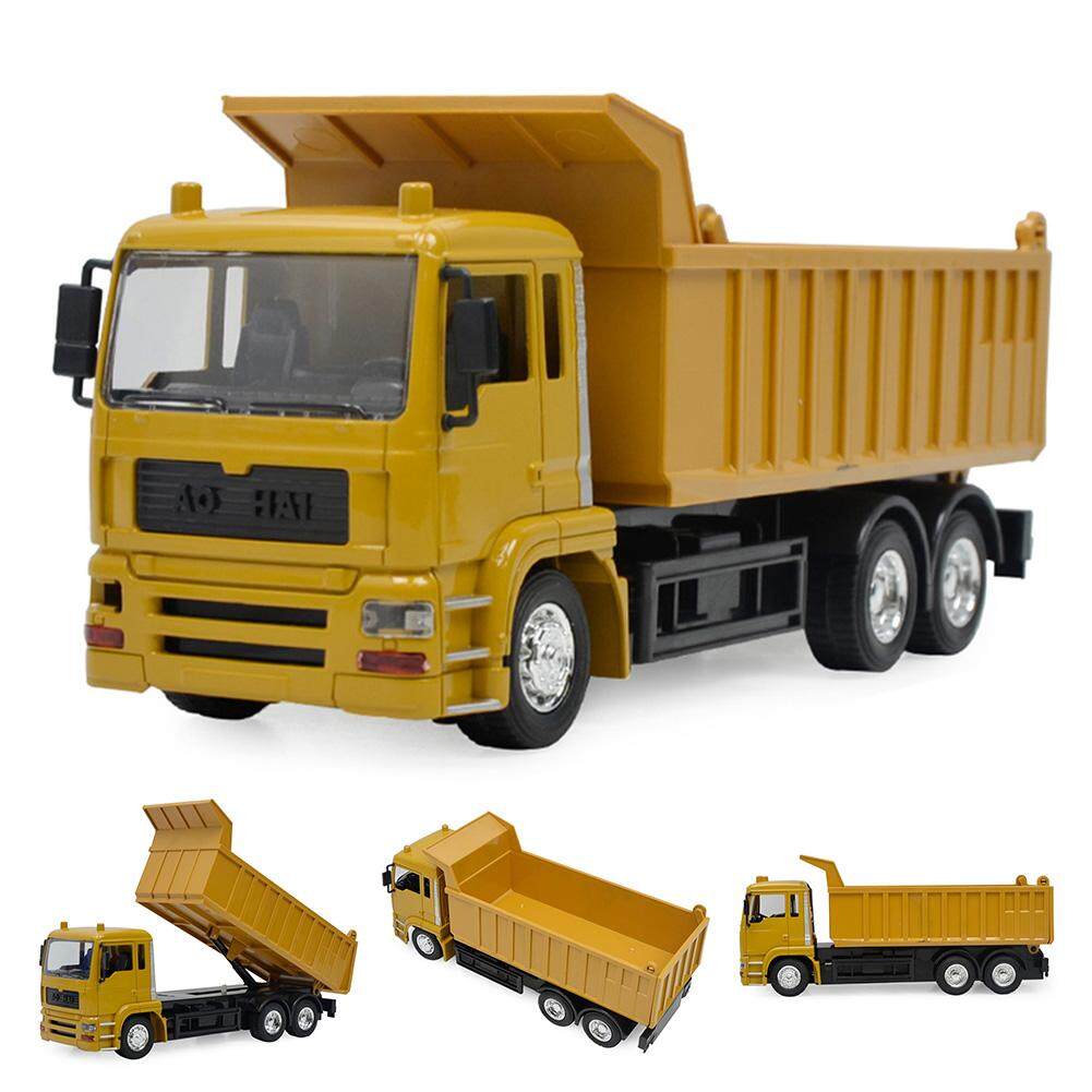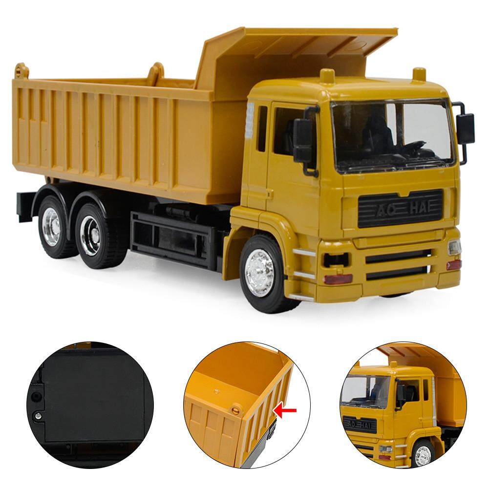 Bafada【Ready Stock】8-Channel USB charging RC cars RC Dump Truck 2.4Ghz Remote Control RC Construction Vehicle Toys for children boys Xmas birthday gifts yellow color RC Engineering truck model Beach t