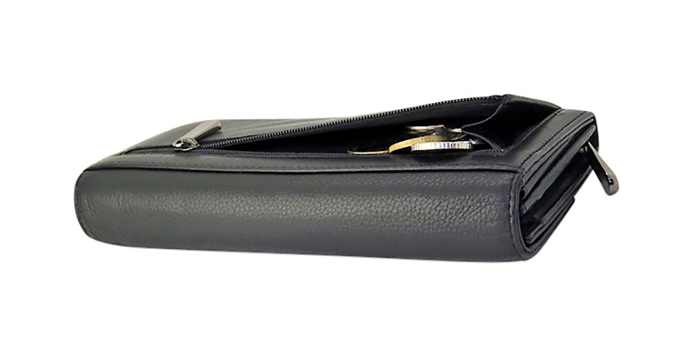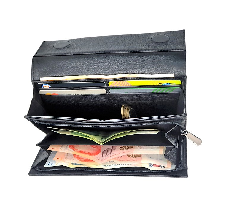 Women Wallet Long Purse - Lady Long Wallet - Cow Leather Wallet for Women - Lady Wallet Branded in Black/Green colour- Oxhide J0016- Excellent Christmas Gift Idea