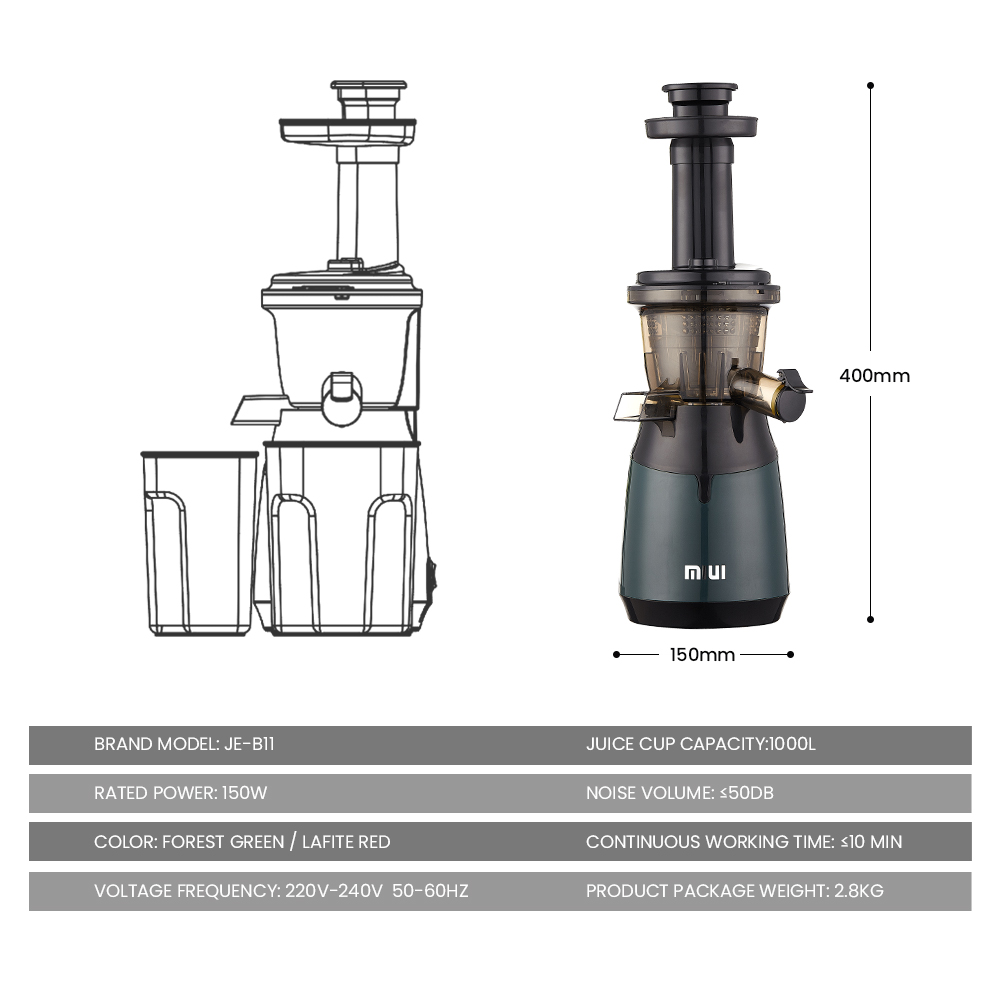 MIUI Slow Juicer Multi-segment helical cold press juicer with Mini-FilterFree strainer easy clean patented technology(2021 New release Fifth-generation Model Forest green)