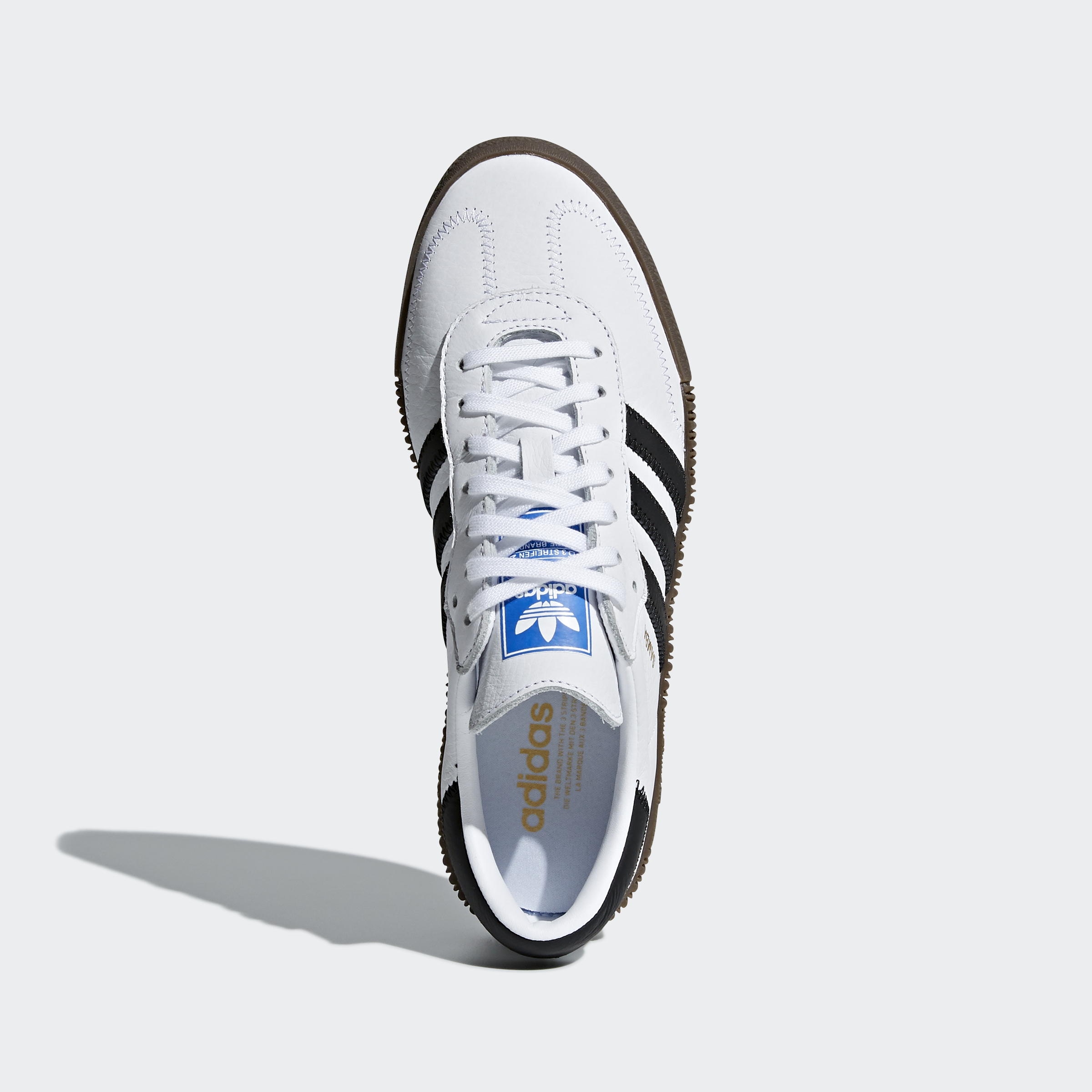 These trainers rework the Samba's classic football silhouette as a stylish platform shoe. The leather upper is stacked on top of a raised gum rubber outsole to add height.