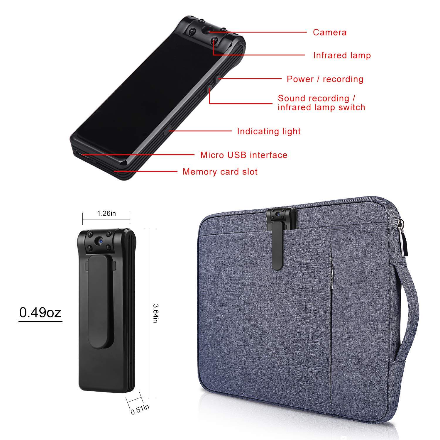 JDM Hidden Camera- Mini Body Camera 6 Hours Battery Life 1080P Spy Camera No WiFi Needed Motion Detection Personal Hidden Camera for Home And Office