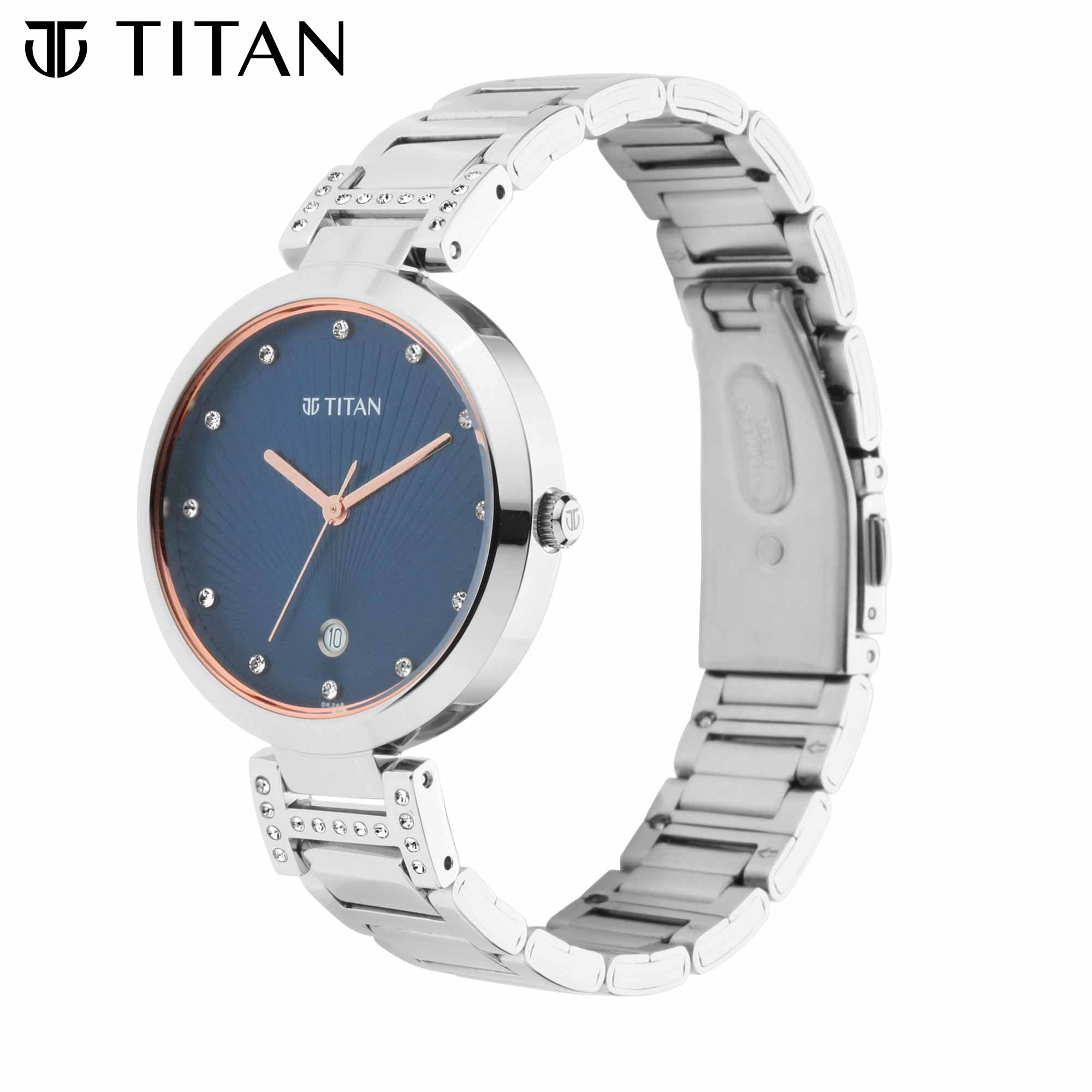 Titan Sparkle II Blue Dial Silver Stainless Steel Strap Women's Watch 2480SM11