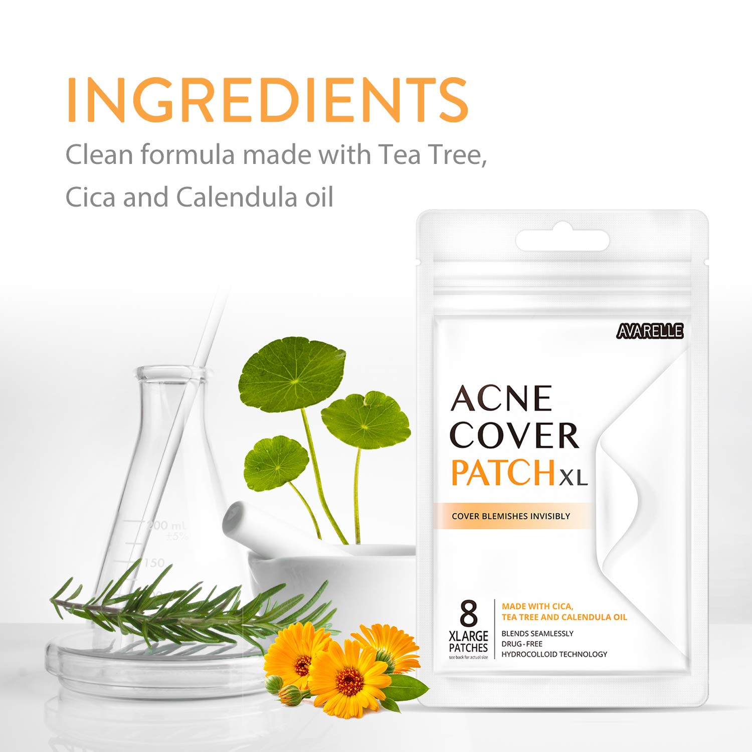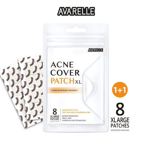 Avarelle Acne Pimple Patch (XL Square / 8 PATCHES) Absorbing Hydrocolloid Spot Treatment with Tea Tree Oil, Calendula Oil and Cica, Vegan, Cruelty Free Certified
