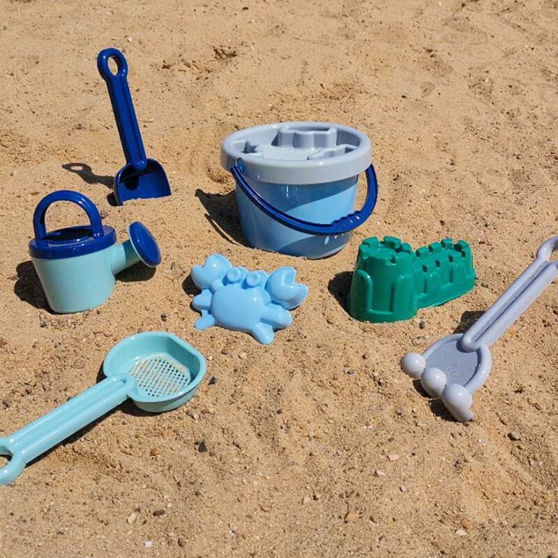 Moulty Kids Beach Toys Toddlers Sand Toys Set 8Pcs with Mesh Bag Including Bucket, Shovels, Rake, Sifter and Molds, Summer Outdoor Beach Sand Toys for Boys, Girls,Toddlers and Kids