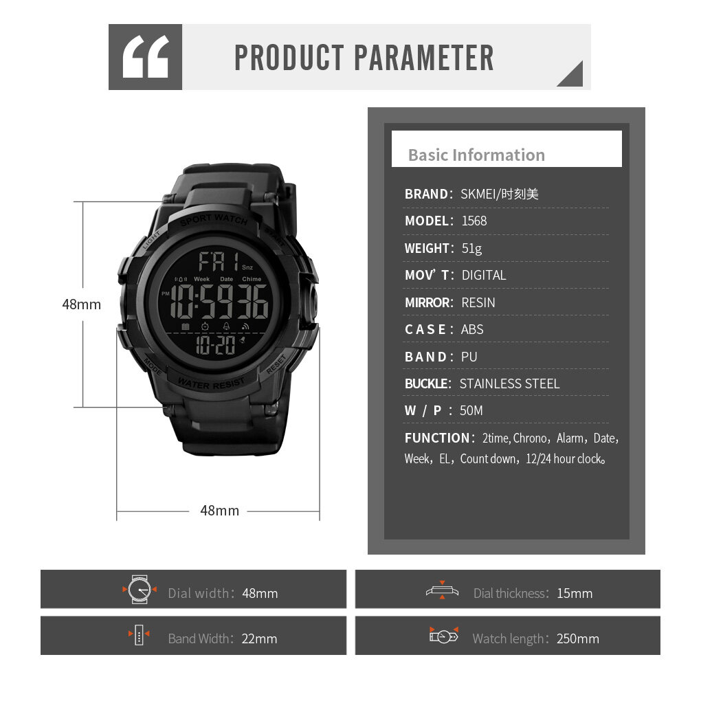 SKMEI Men Sports Digital Watch Stopwatch Multifunction Backlight Waterproof Wristwatch Watch For Man Men 1568
