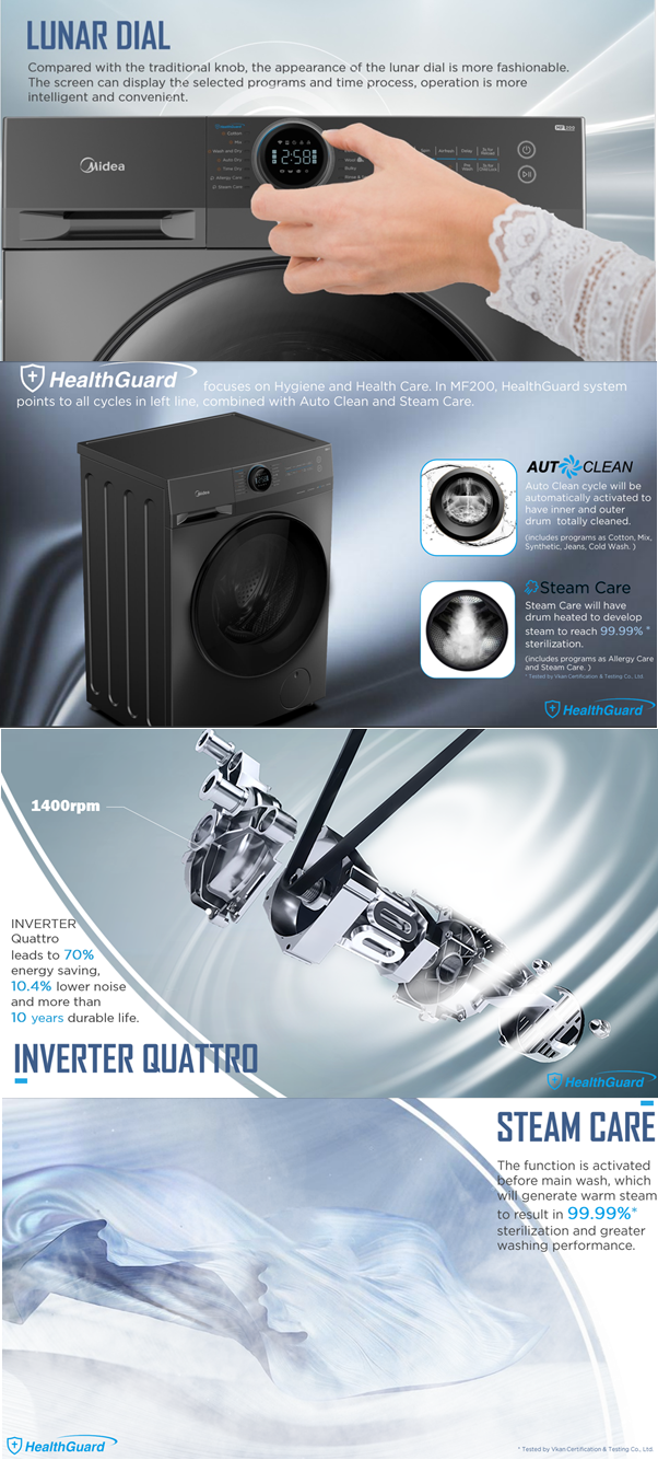 (Bulky) MIDEA MF200D85B 8.5/6KG DARK GREY FRONT LOAD WASHER CUM DRYER