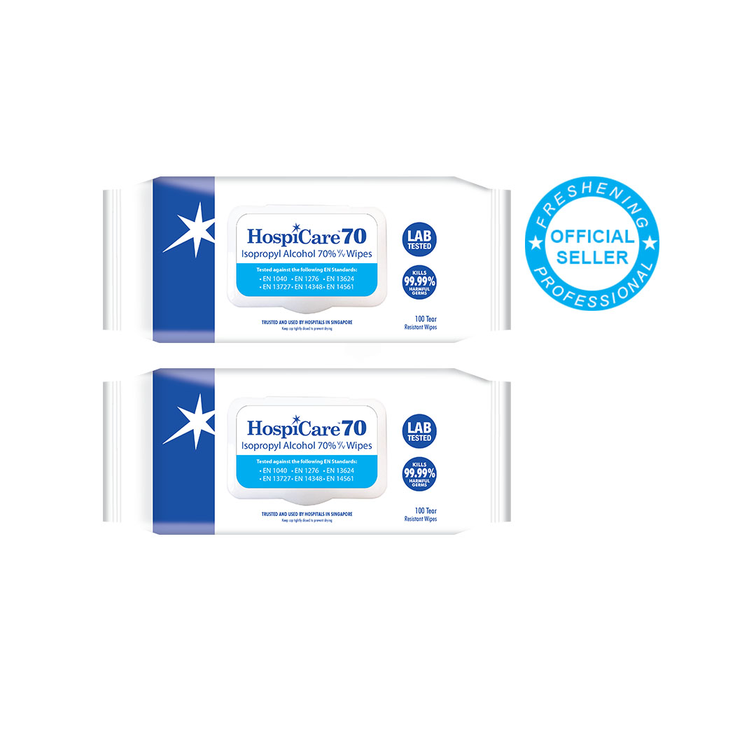 HospiCare 70 are disposable, non-woven wipes saturated with 70% Isopropyl Alcohol solution. Isopropyl Alcohol is an excellent disinfectant that is commonly available and inexpensive. Convenient to use for both cleaning and disinfecting as it is in wipes form.