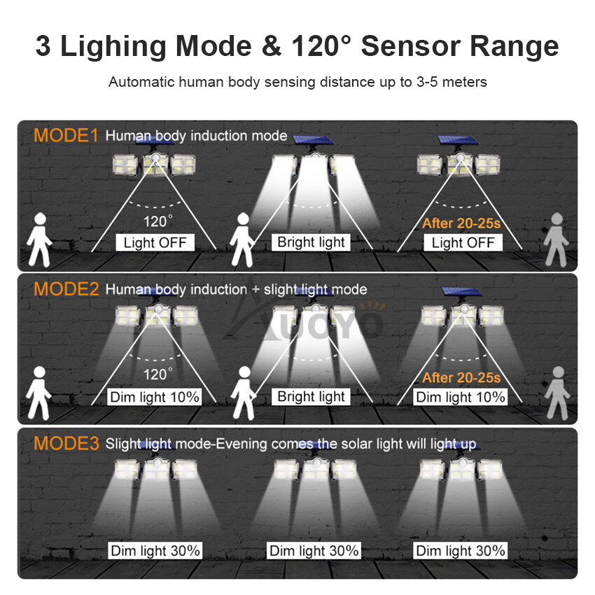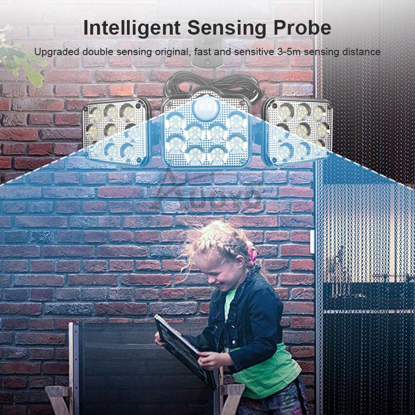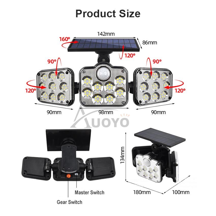 Auoyo 138/198 LED Solar Outdoor Lights Separate Lighting Wall Light 3 Modes Lamps Spotlight Motion Sensor Lamp Waterproof Wall Lamp Split Type 3 Way Solar Powered Lights Adjustable for Front Door Path
