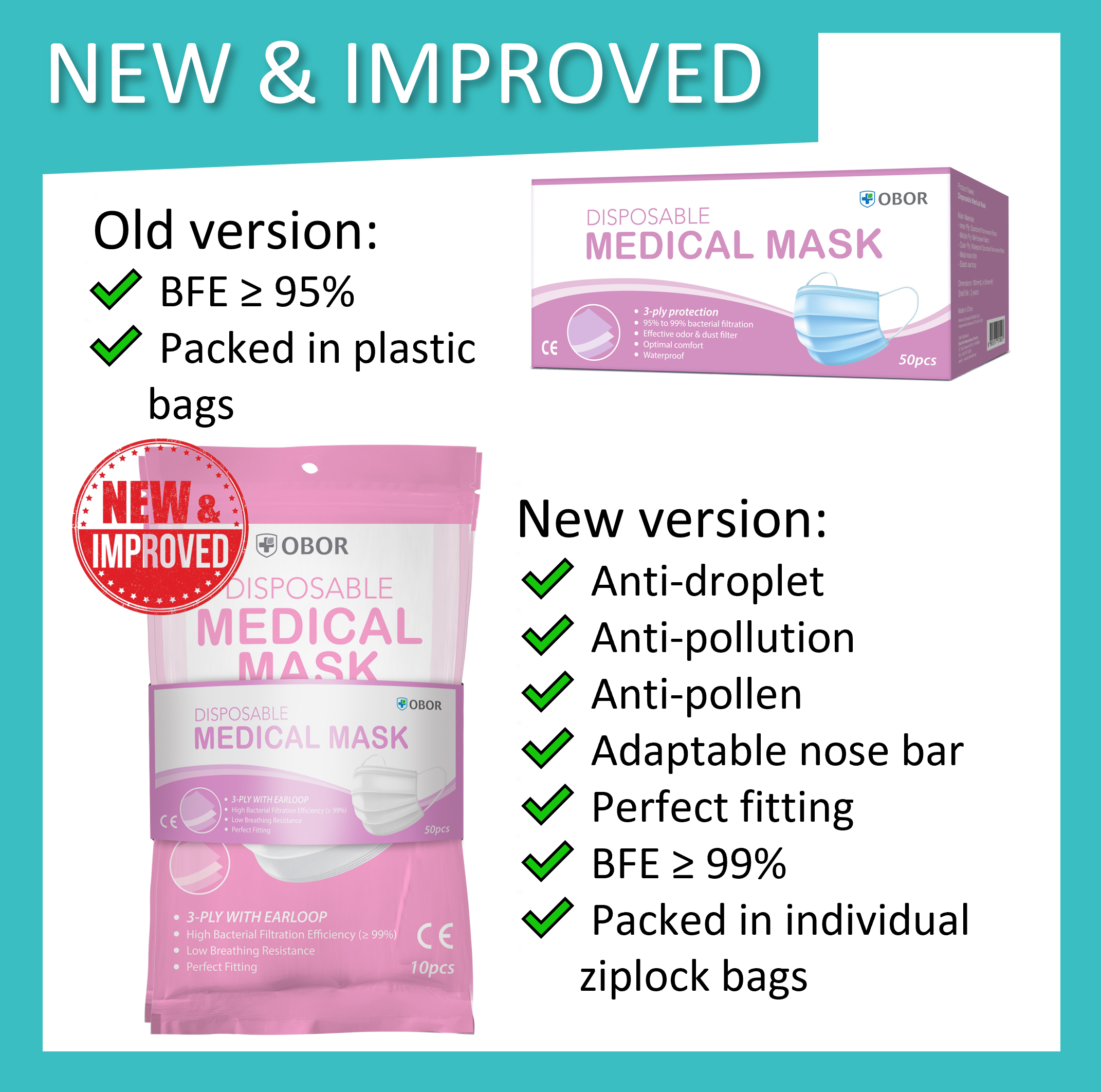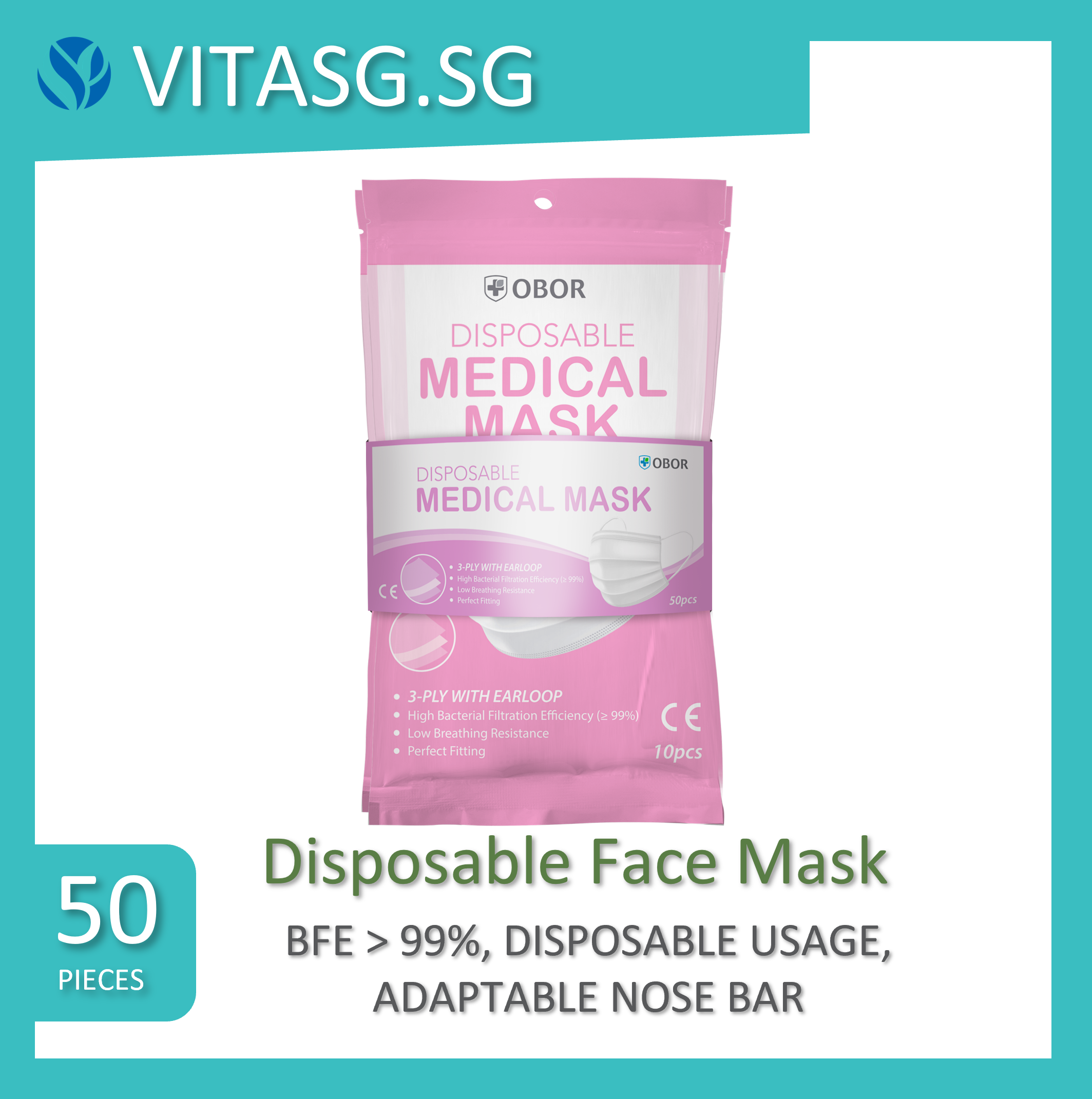 [NEW BATCH RESTOCK] OBOR Disposable Surgical/Medical Face Mask 3 ply 50pcs Disposable, Ear Loop Adaptable Nose Bar High Filtration Seperate Packing