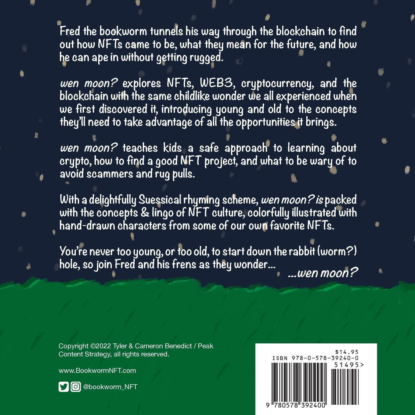 wen moon? explores NFTs, WEB3, cryptocurrency, and the blockchain with the same childlike wonder we all experienced when we first discovered it, introducing young and old to the concepts they'll need to know to take advantage of all of the opportunities it brings.